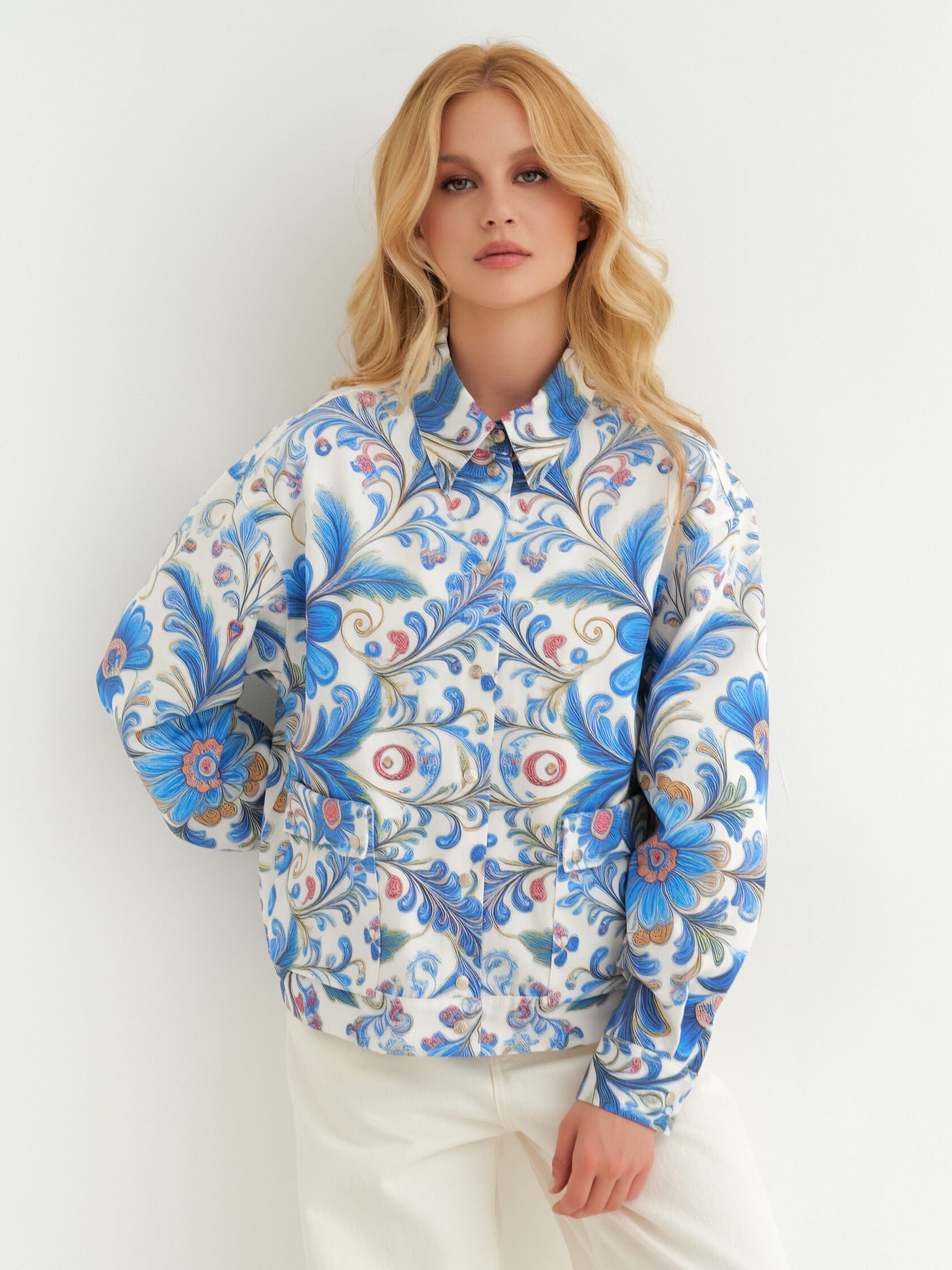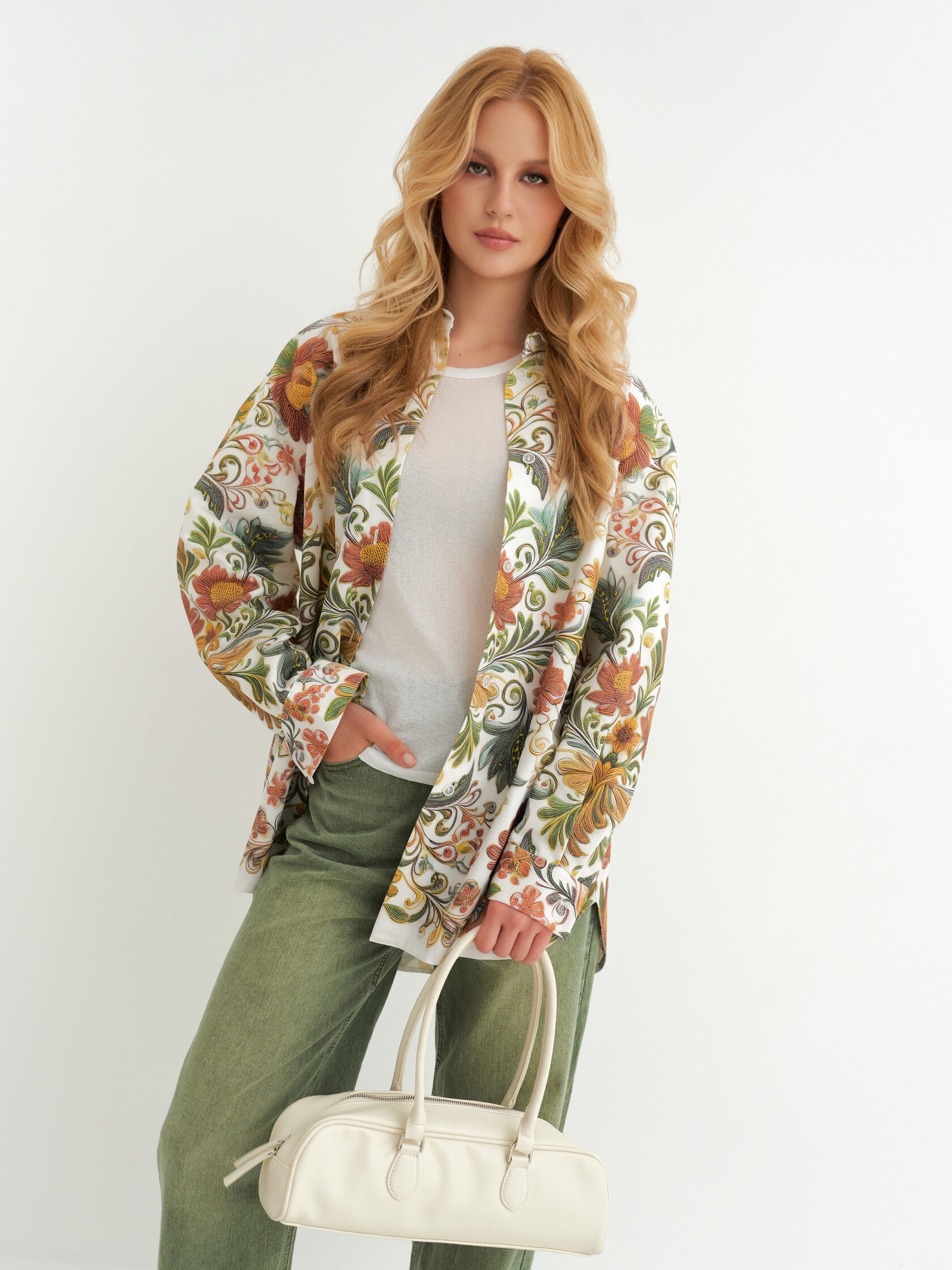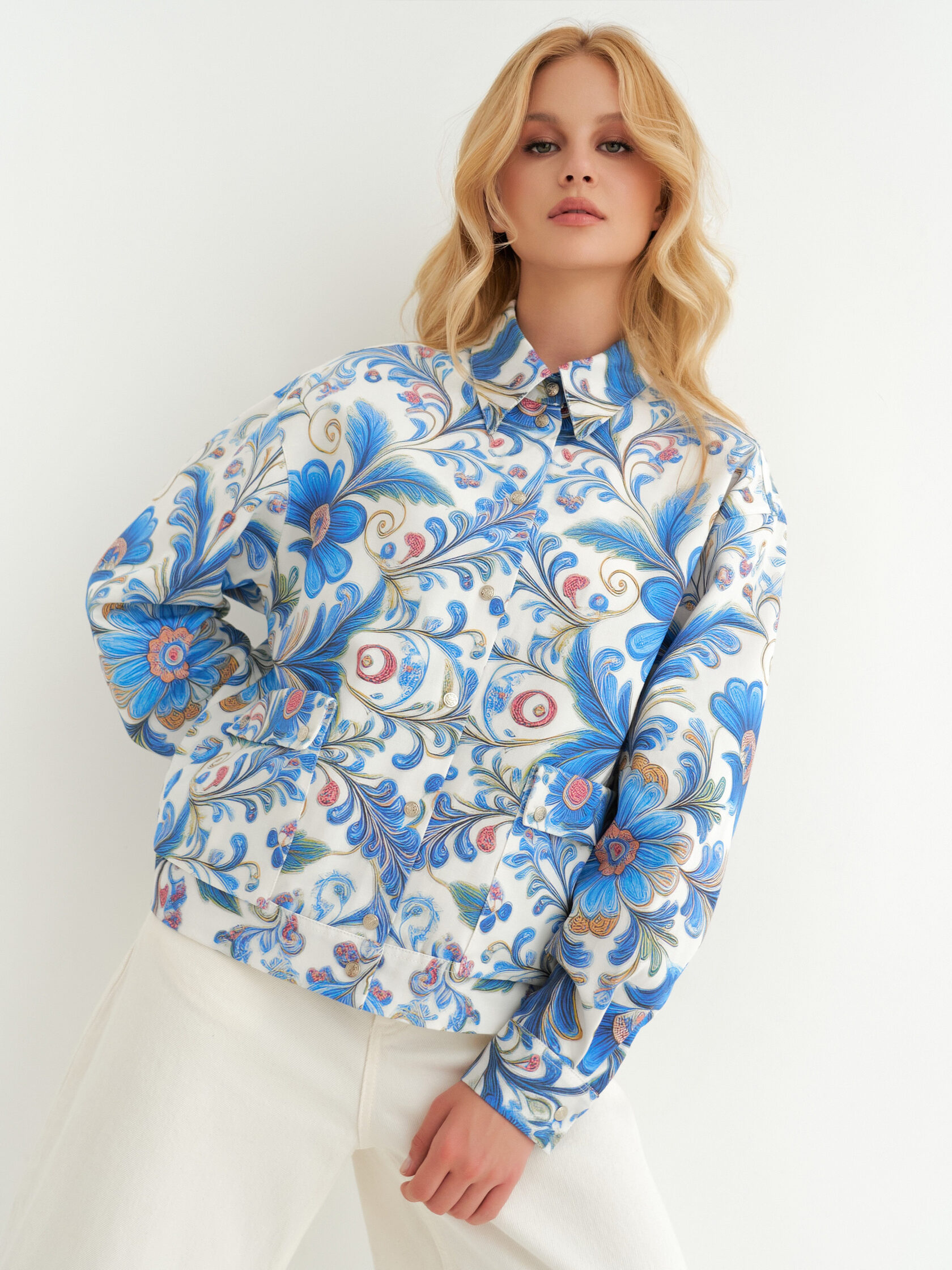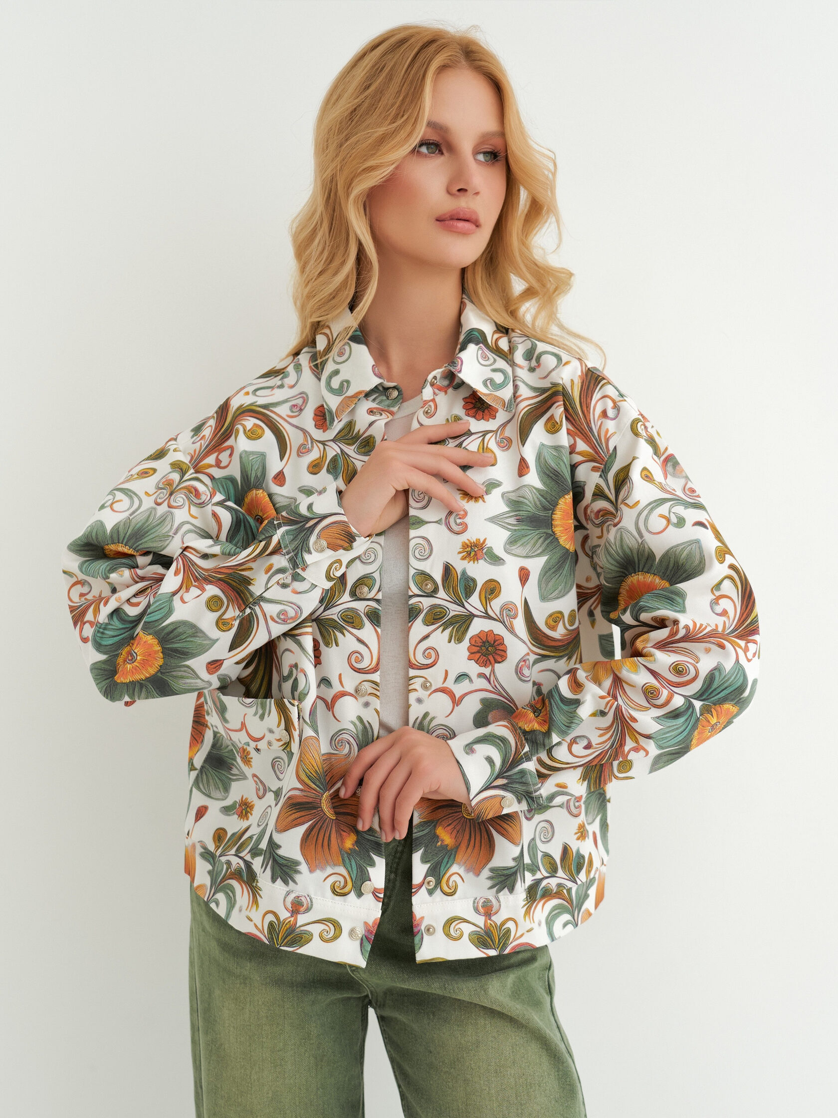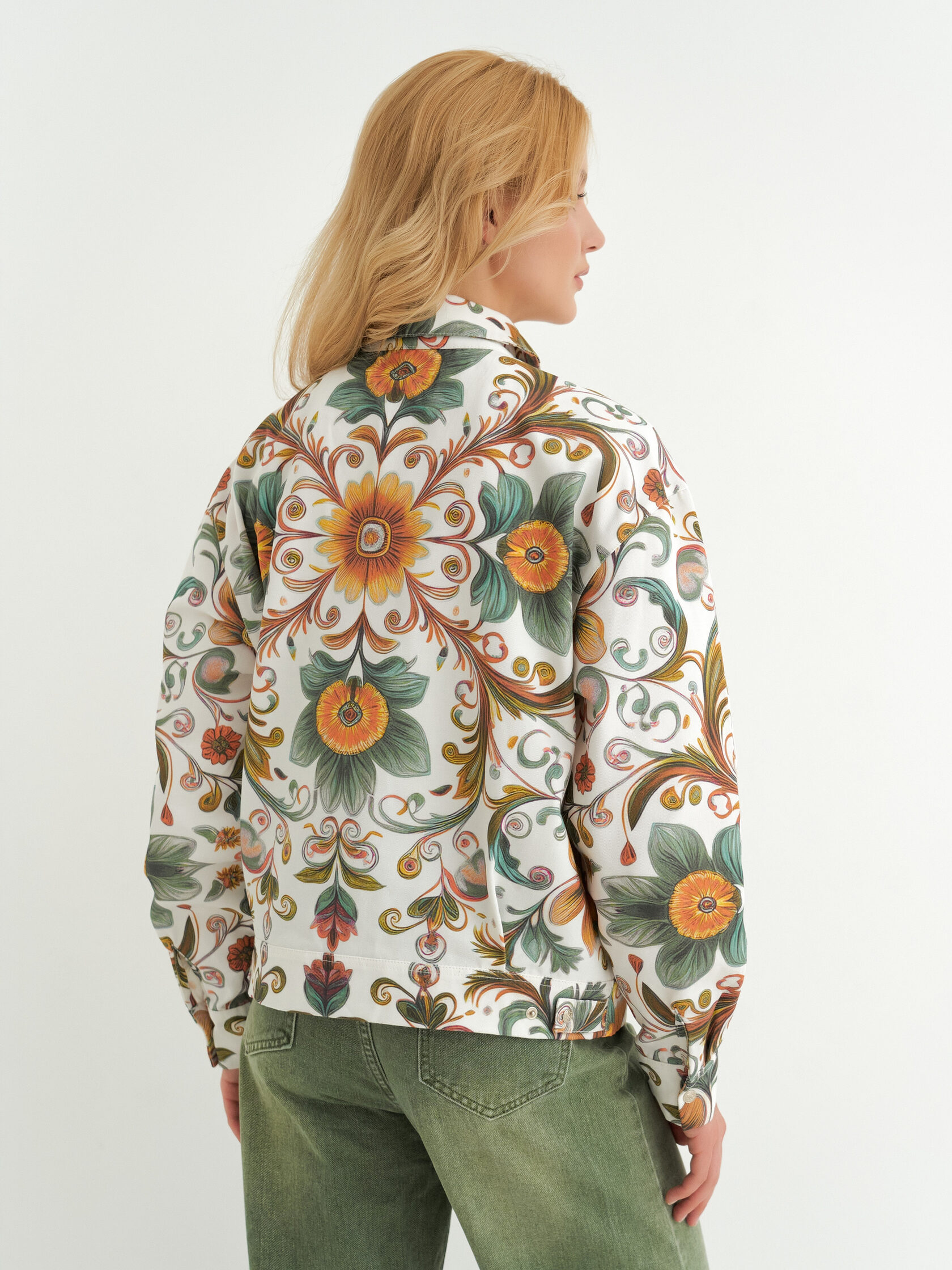 Куртка-рубашка из 100% хлопка с орнаментом в стиле народной росписи — одежда с характером, символикой и душой