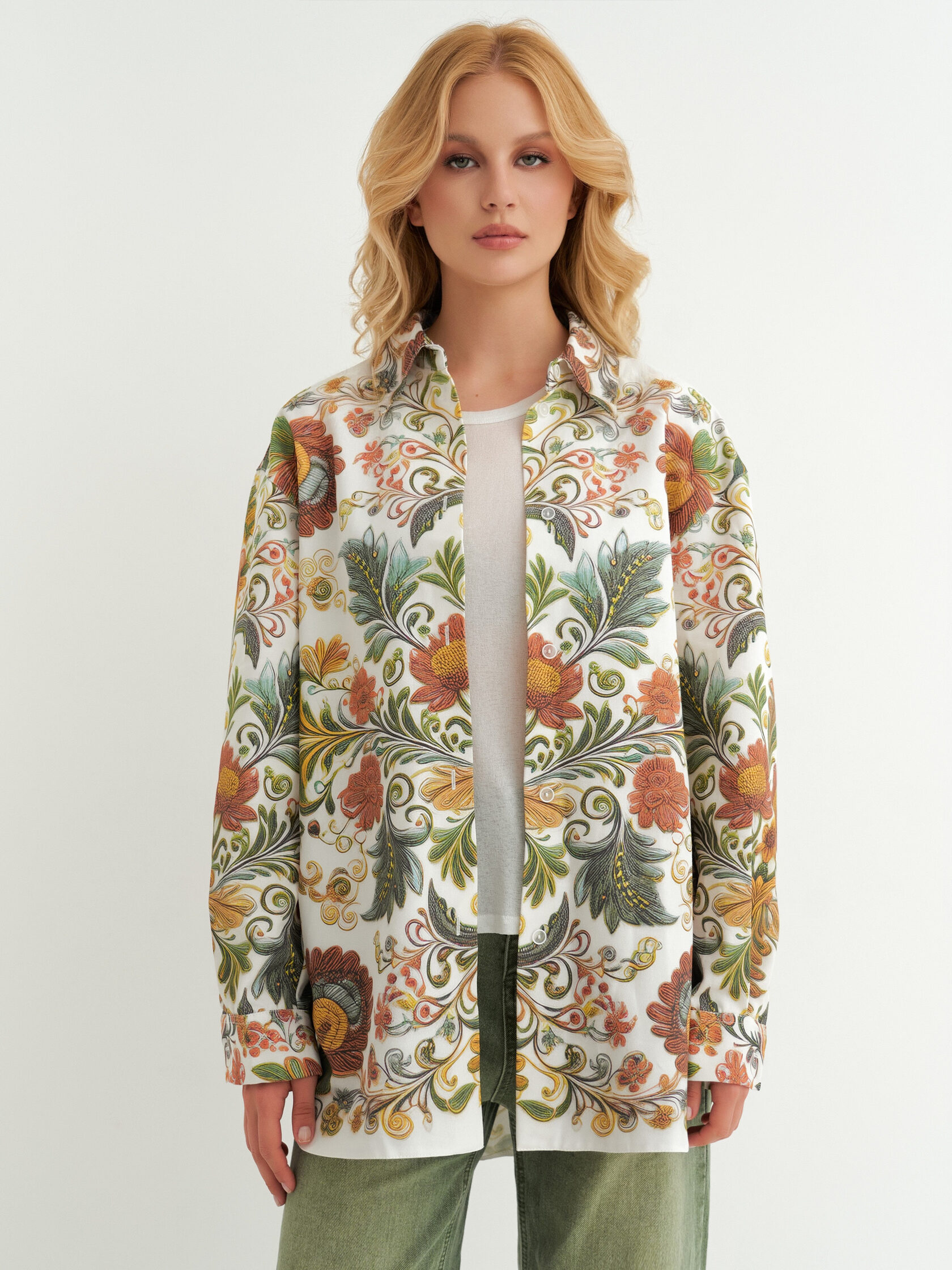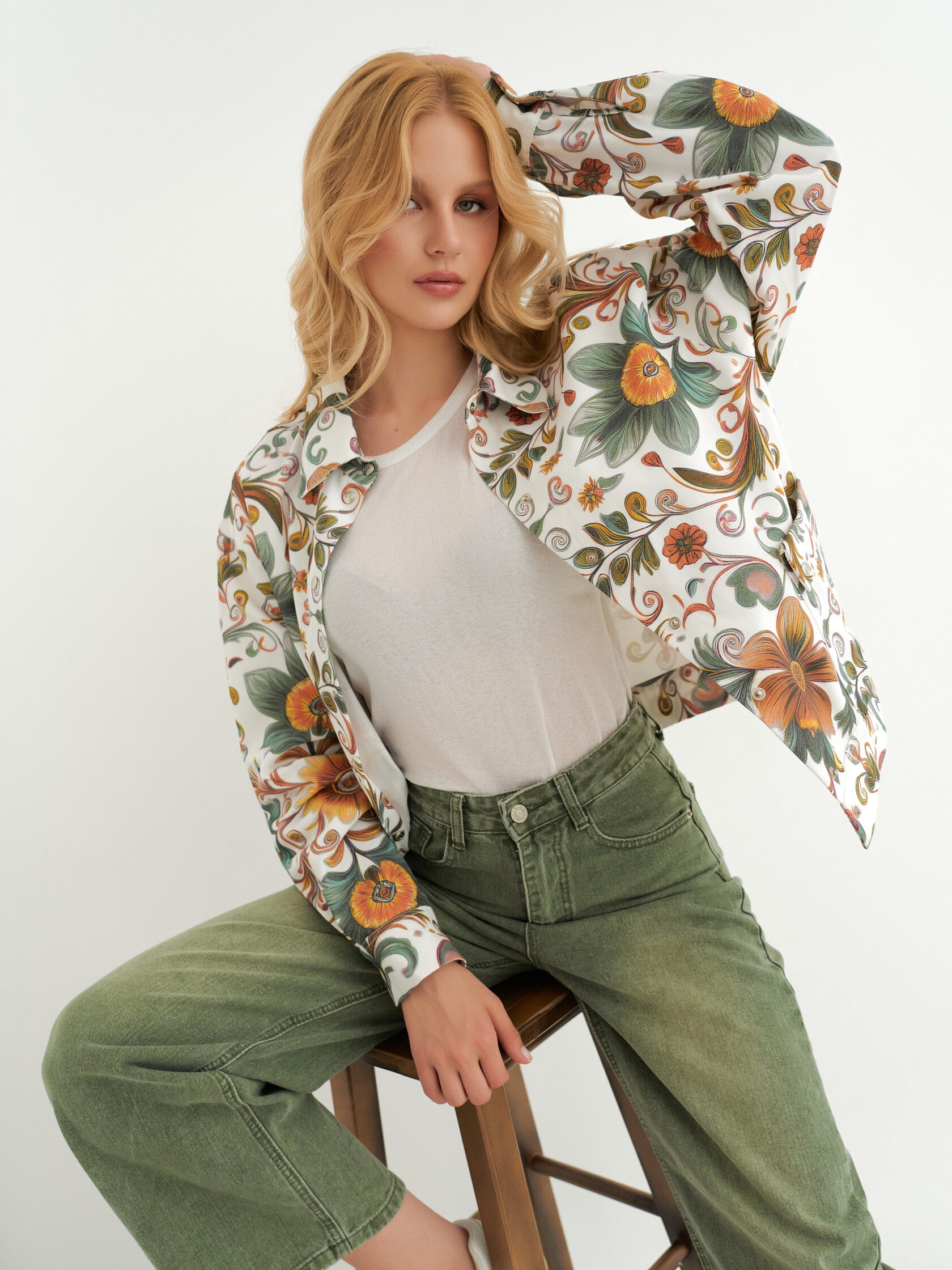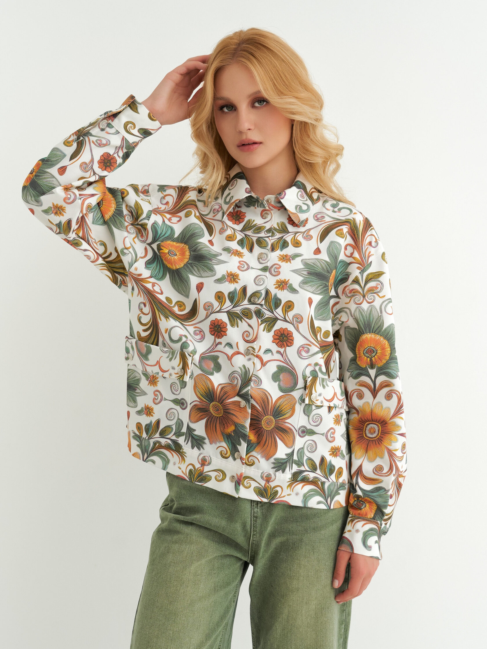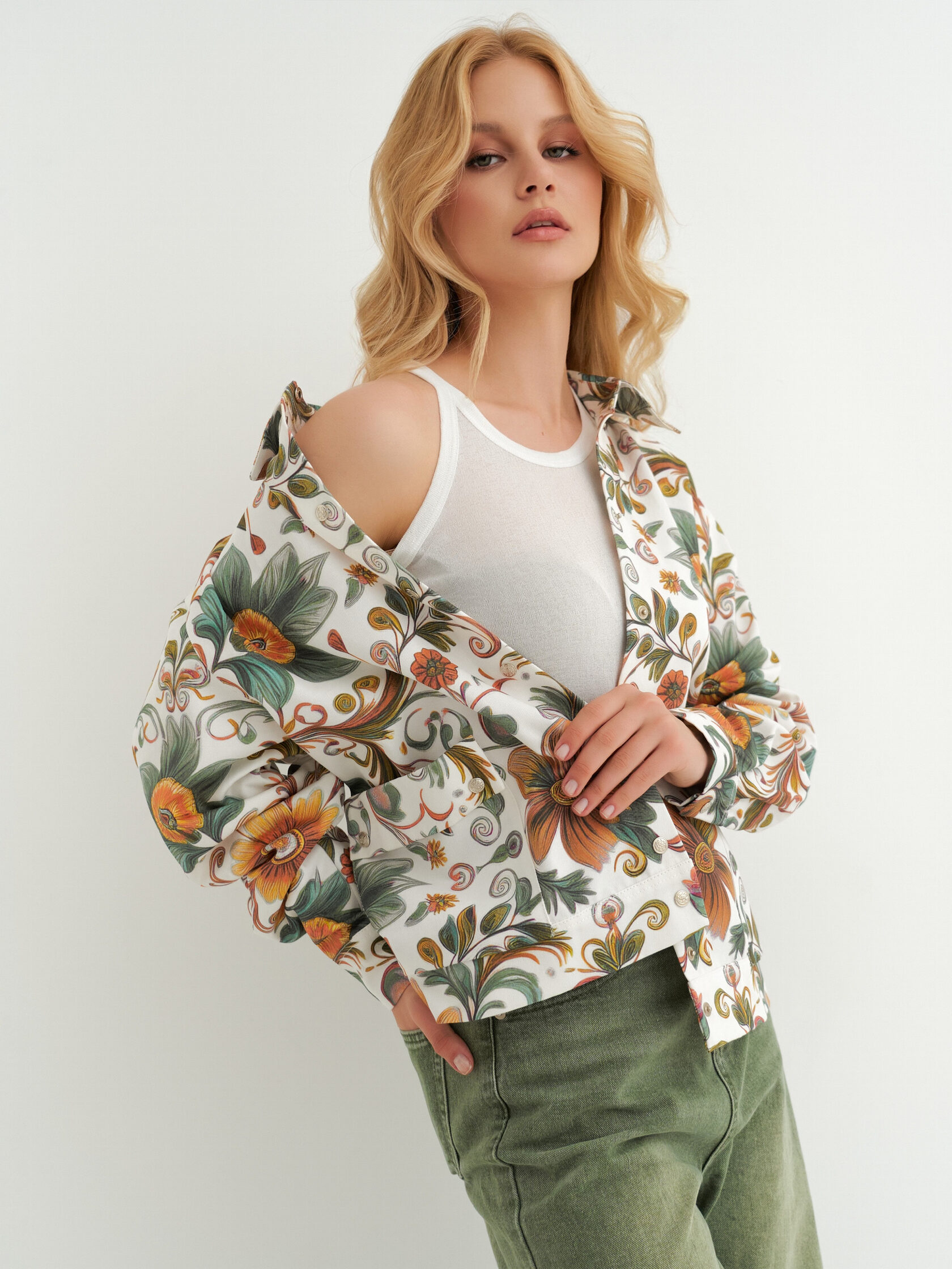 Куртка-рубашка из 100% хлопка с орнаментом в стиле народной росписи — одежда с характером, символикой и душой