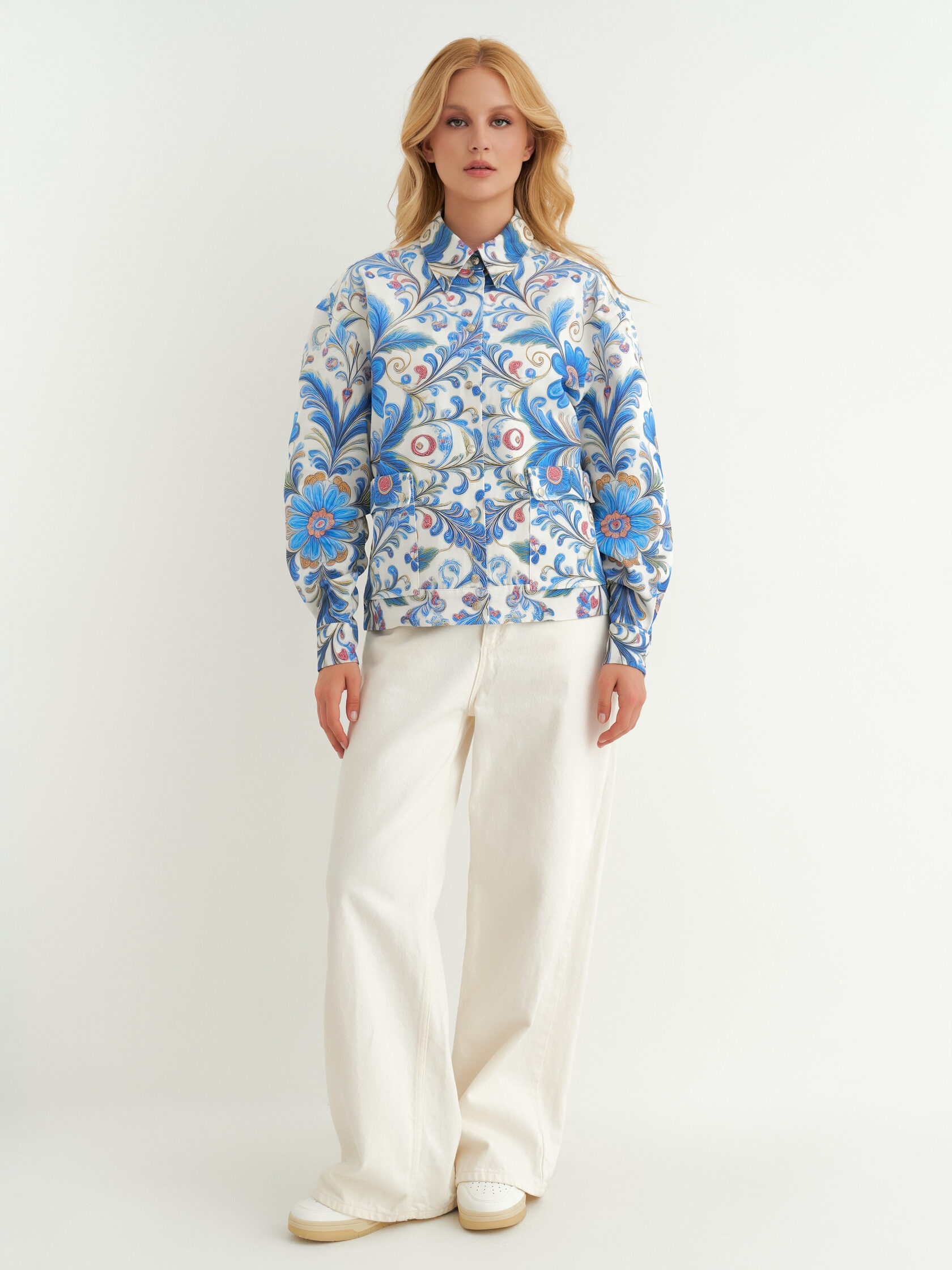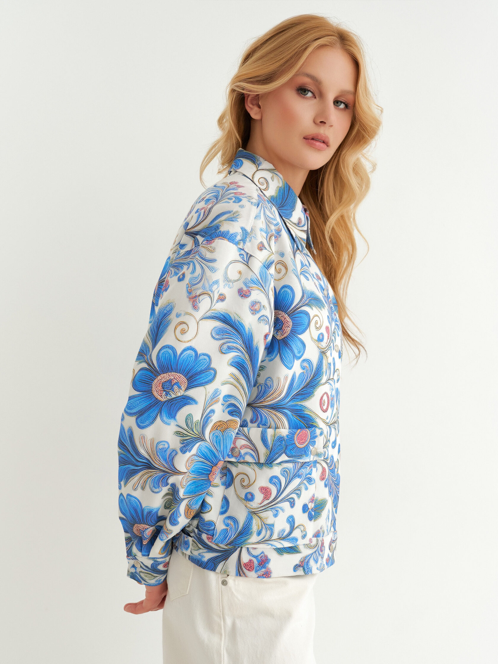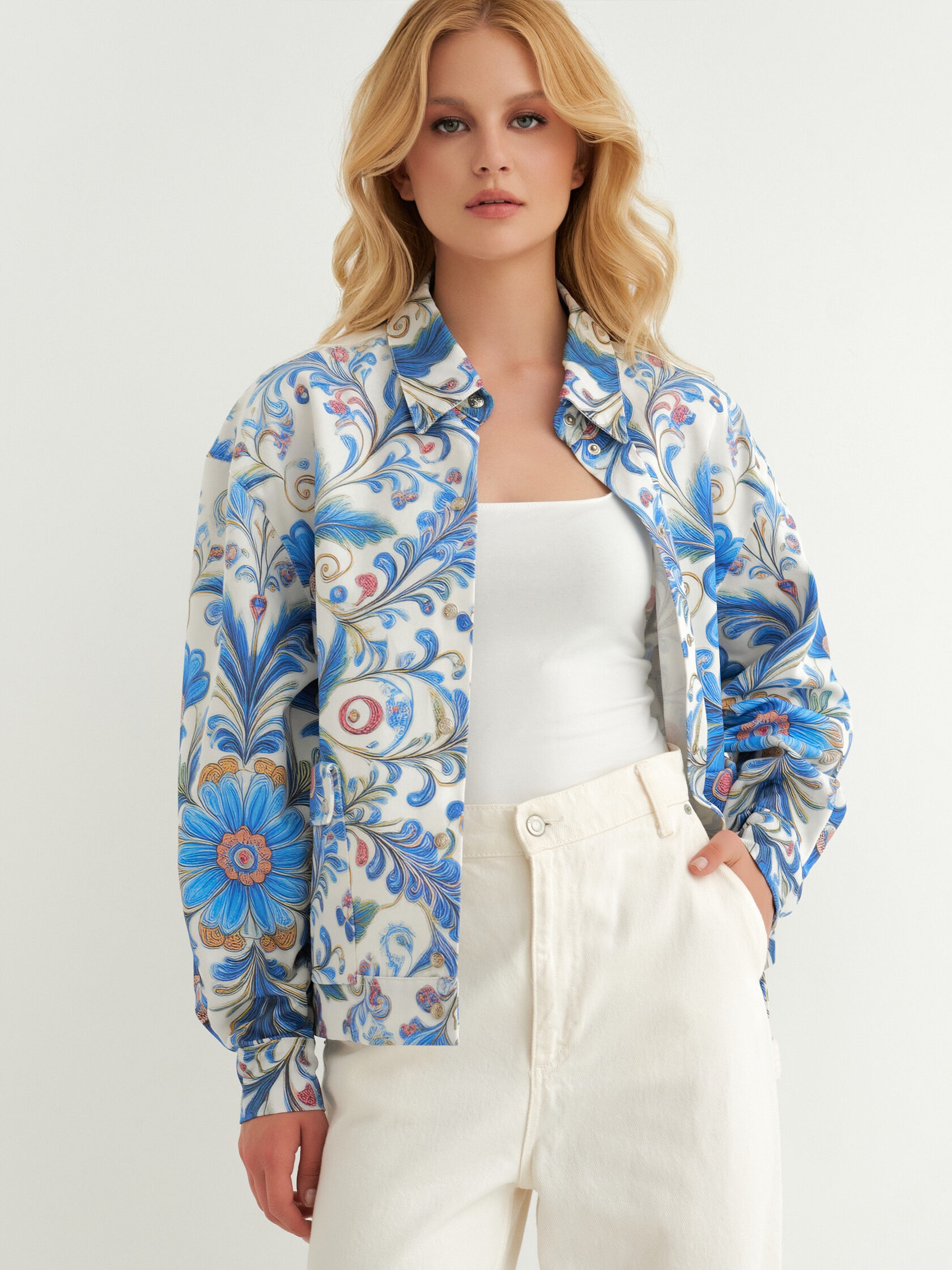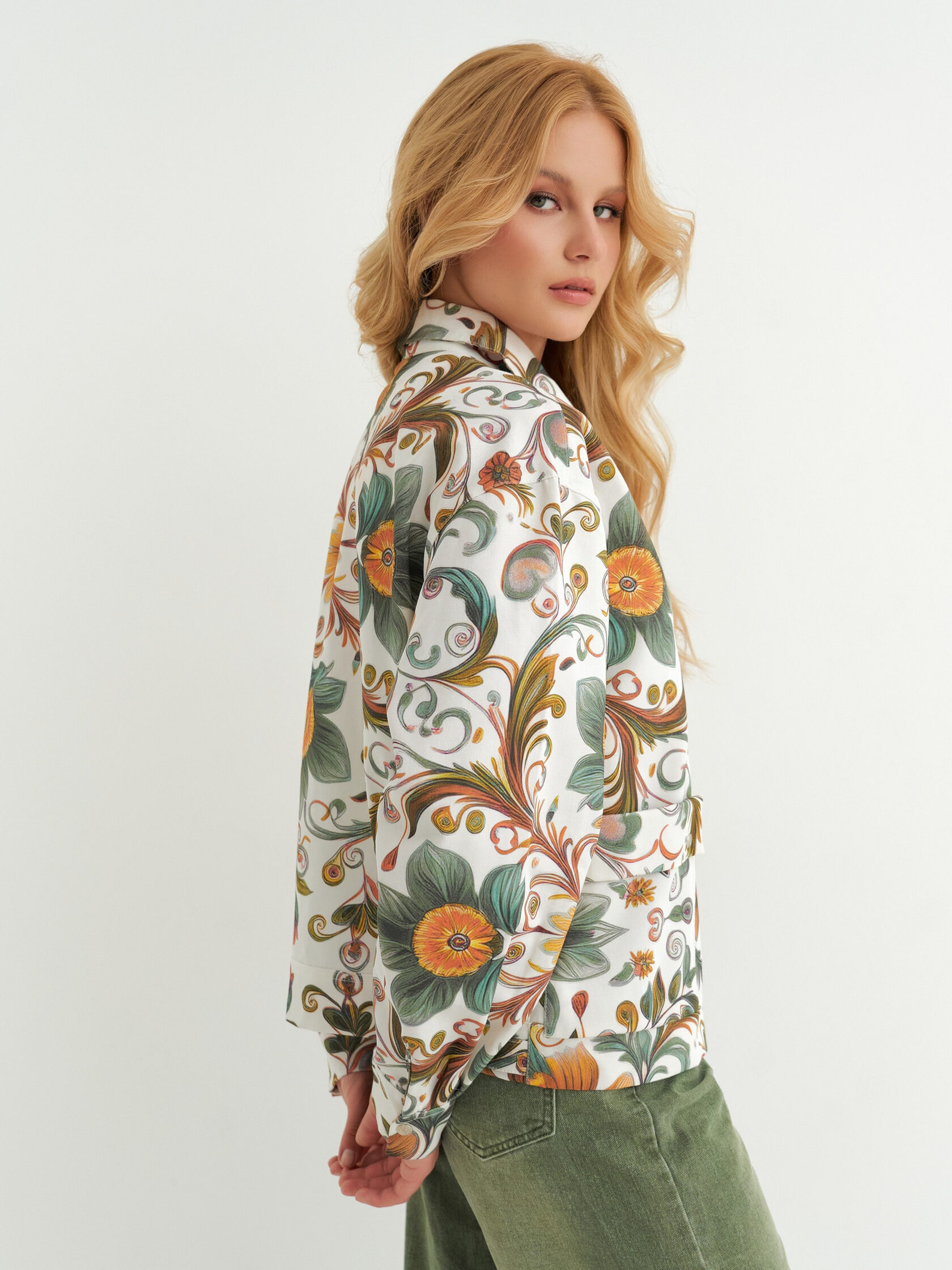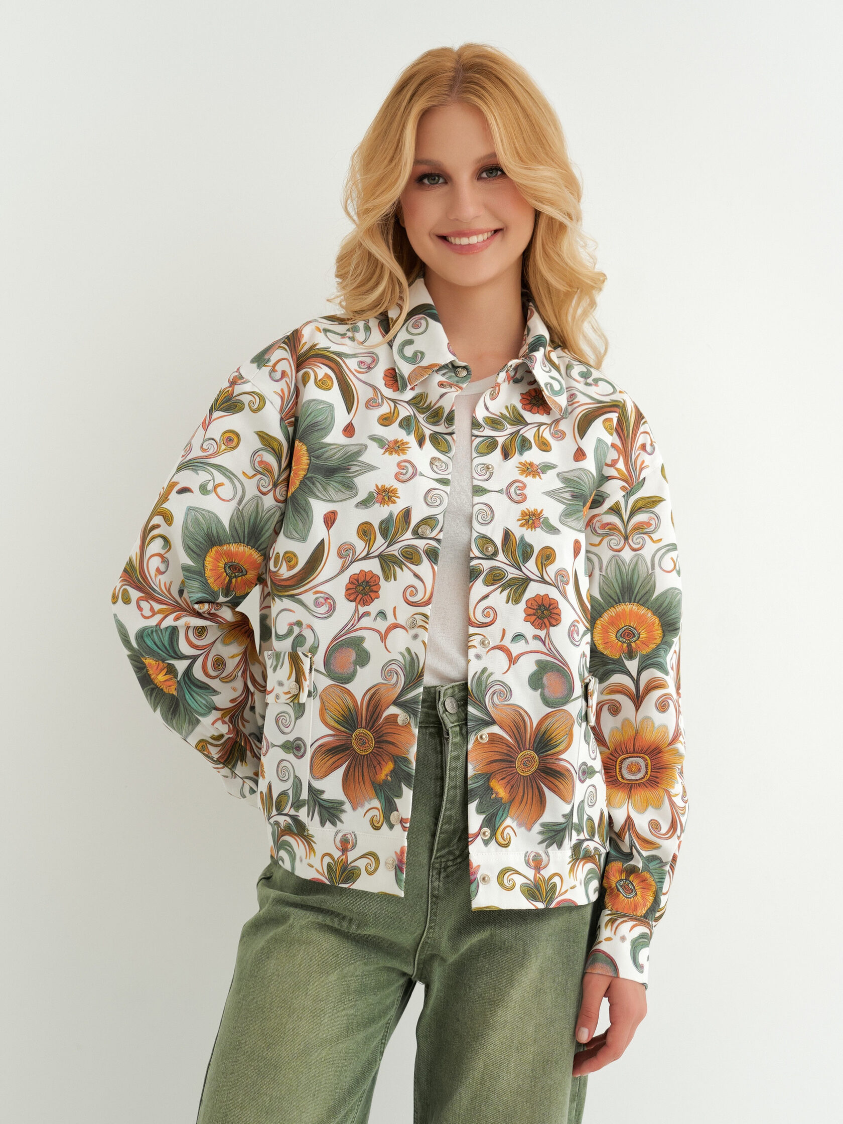 Куртка-рубашка из 100% хлопка с орнаментом в стиле народной росписи — одежда с характером, символикой и душой