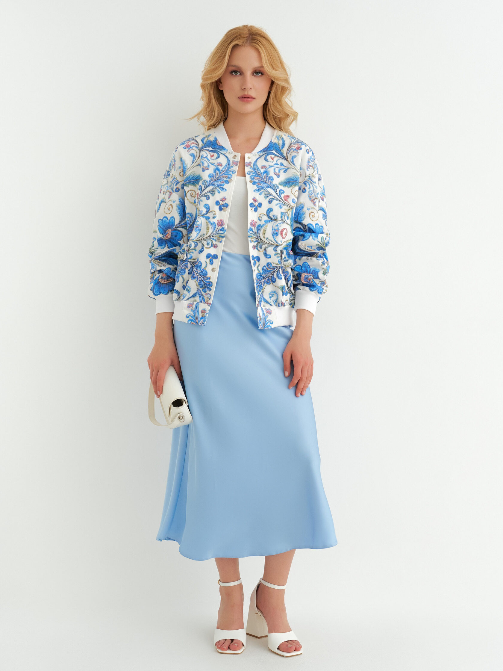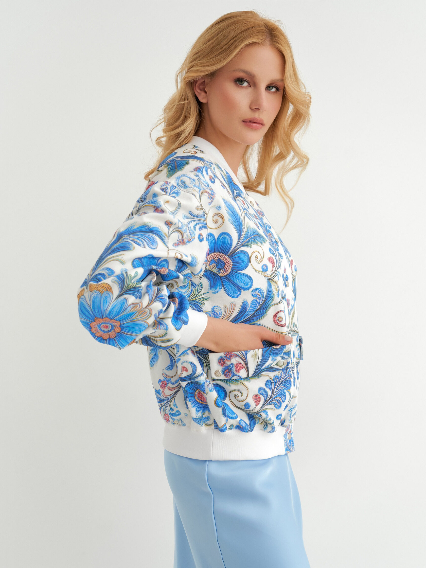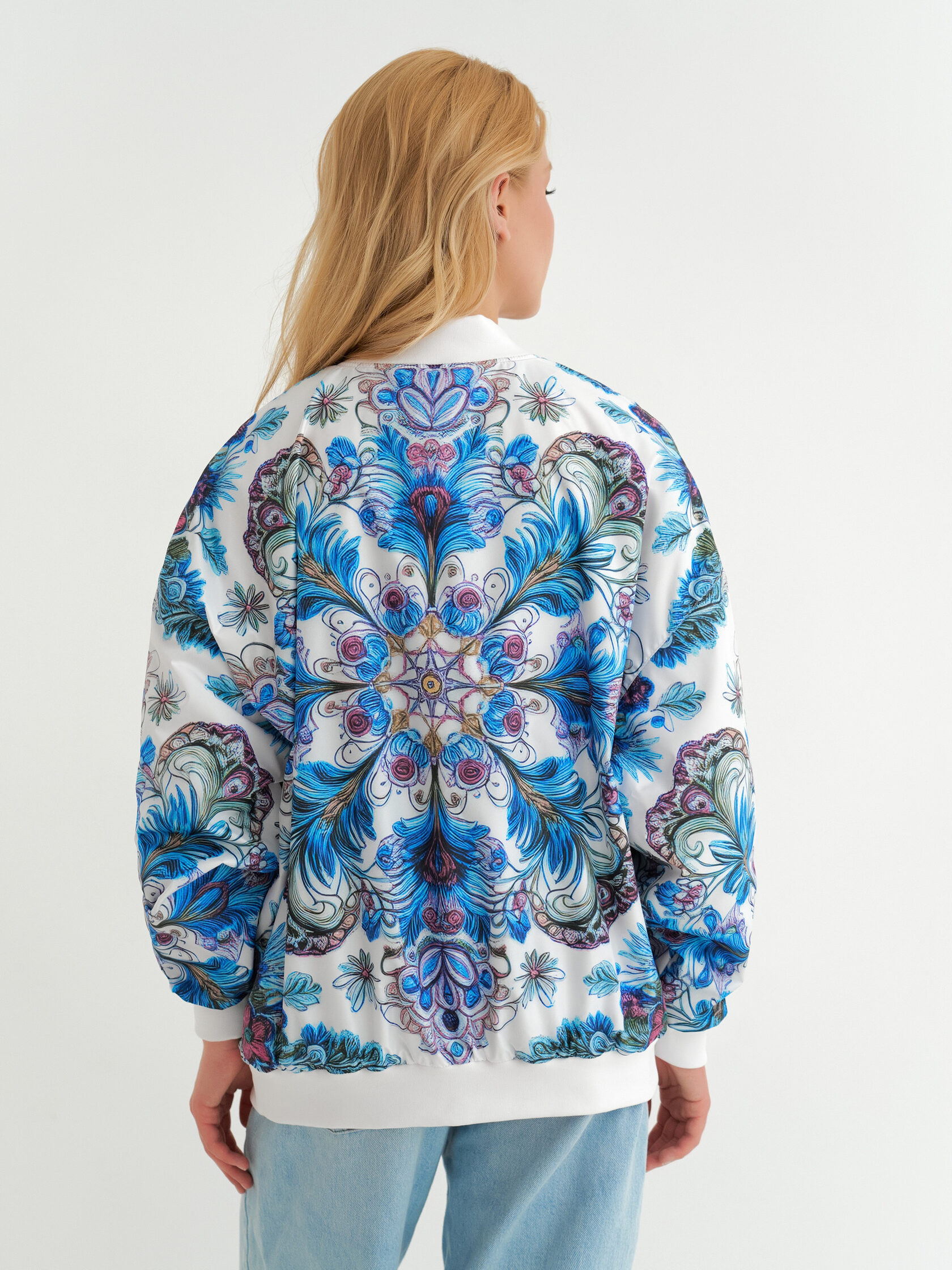 Этот бомбер — не просто предмет одежды. Он — воплощение женственности, света и культурной памяти. В нём природа говорит через линии и краски, а узор становится историей, которую можно носить на себе.Сделано в России